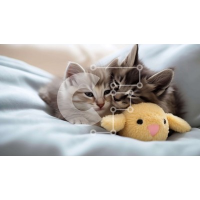 Υπάρχει δυνατότητα προσωποποίησης με δική σας φωτογραφία και προσαρμογής διαστάσεων κατόπιν παραγγελίας. Το συγεκεριμενο Puzzle 10x10 cm – 25 κομμ παρουσιαζει Η εικόνα δείχνει δύο γατάκια στριμωγμένα σε ένα κρεβάτι, με το ένα από αυτά να ακουμπάει πάνω στο άλλο. Ένα κίτρινο λούτρινο ζωάκι είναι επίσης παρόν στη σκηνή, προσθέτοντας στην παιχνιδιάρικη ατμόσφαιρα. Ένα μοναδικό Puzzle 10x10 cm – 25 κ