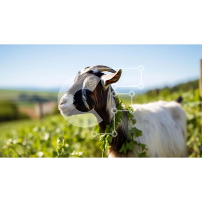 Υπάρχει δυνατότητα προσωποποίησης με δική σας φωτογραφία και προσαρμογής διαστάσεων κατόπιν παραγγελίας. Το συγεκεριμενο Puzzle 10x10 cm – 25 κομμ παρουσιαζει Αυτή η εικόνα παρουσιάζει μια ασπρόμαυρη κατσίκα που στέκεται σε ένα χορτάρι. Η κατσίκα είναι περιποιημένη και έχει πράσινα φύλλα στο λαιμό της. Είναι πιθανό να είναι μέρος ενός κοπαδιού ζώων και μπορεί να υπάρχουν άλλα κατσίκια ή πρόβατα κο