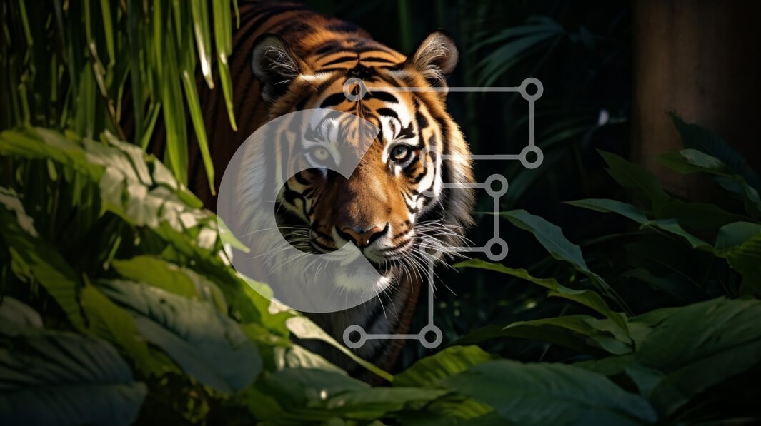 Υπάρχει δυνατότητα προσωποποίησης με δική σας φωτογραφία και προσαρμογής διαστάσεων κατόπιν παραγγελίας. Το συγεκεριμενο Puzzle 10x10 cm – 25 κομμ παρουσιαζει Η εικόνα παρουσιάζει μια μεγαλοπρεπή τίγρη που αναδύεται από μια πυκνή ζούγκλα, που περιβάλλεται από ζωντανό πράσινο φύλλωμα. Οι εντυπωσιακές πορτοκαλί και μαύρες ρίγες του έρχονται σε όμορφη αντίθεση με το καταπράσινο τοπίο, αναδεικνύοντας
