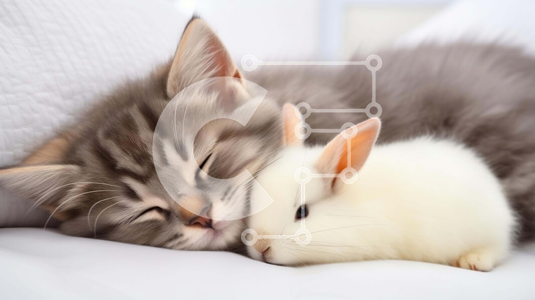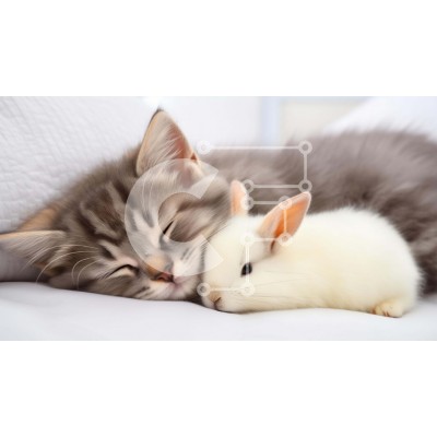 Υπάρχει δυνατότητα προσωποποίησης με δική σας φωτογραφία και προσαρμογής διαστάσεων κατόπιν παραγγελίας. Το συγεκεριμενο Puzzle 10x10 cm – 25 κομμ παρουσιαζει Η εικόνα απεικονίζει μια συγκλονιστική σκηνή μιας γκρι και λευκής γάτας στριμωγμένης δίπλα σε ένα αξιολάτρευτο λευκό κουνελάκι, και οι δύο κοιμούνται ήσυχα σε ένα άνετο κρεβάτι. Η γάτα φαίνεται να φροντίζει το κουνελάκι, δείχνοντας μια συγκι