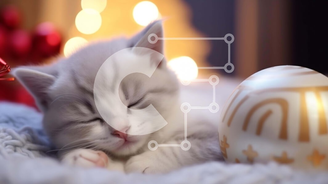 Υπάρχει δυνατότητα προσωποποίησης με δική σας φωτογραφία και προσαρμογής διαστάσεων κατόπιν παραγγελίας. Το συγεκεριμενο Puzzle 10x10 cm – 25 κομμ παρουσιαζει Αυτή η εικόνα δείχνει ένα αξιολάτρευτο γκρι και λευκό γατάκι να κοιμάται ήσυχα πάνω από μια διακοσμημένη μπάλα. Το γατάκι είναι κουλουριασμένο με το κεφάλι του ακουμπισμένο στην επιφάνεια της μπάλας. Στο βάθος, υπάρχει ένα όμορφα στολισμένο