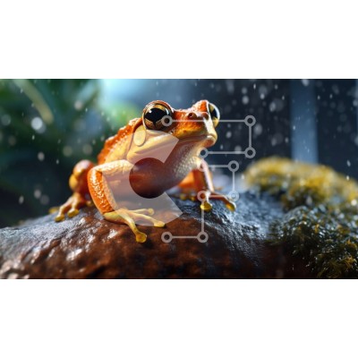 Υπάρχει δυνατότητα προσωποποίησης με δική σας φωτογραφία και προσαρμογής διαστάσεων κατόπιν παραγγελίας. Το συγεκεριμενο Puzzle 10x10 cm – 25 κομμ παρουσιαζει Αυτή η εικόνα παρουσιάζει έναν κόκκινο βάτραχο που κάθεται σε έναν βράχο κατά τη διάρκεια μιας βροχερής ημέρας. Το ζωηρό κόκκινο χρώμα του βατράχου ξεχωρίζει στους γκρίζους και πράσινους τόνους του περιβάλλοντος. Οι σταγόνες της βροχής προσθ