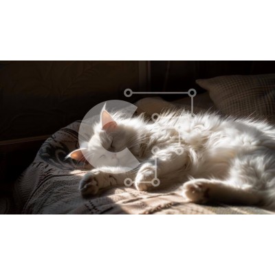 Υπάρχει δυνατότητα προσωποποίησης με δική σας φωτογραφία και προσαρμογής διαστάσεων κατόπιν παραγγελίας. Το συγεκεριμενο Puzzle 10x10 cm – 25 κομμ παρουσιαζει Η εικόνα δείχνει μια λευκή, χνουδωτή γάτα να κοιμάται στο κρεβάτι. Φαίνεται να είναι ξαπλωμένο στο φως του ήλιου, με το κεφάλι του ακουμπισμένο σε ένα από τα μαξιλάρια. Η γούνα της γάτας είναι απαλή και αφράτη, καθιστώντας την ιδανική για αγ
