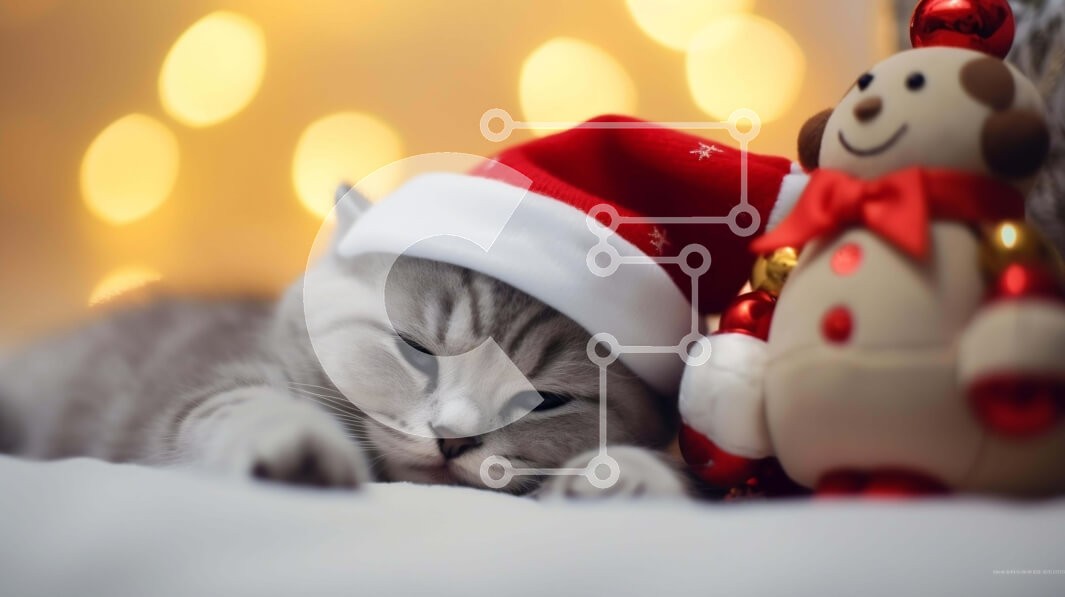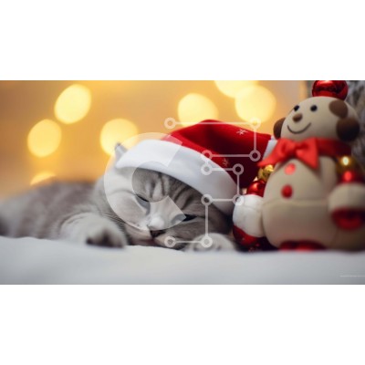 Υπάρχει δυνατότητα προσωποποίησης με δική σας φωτογραφία και προσαρμογής διαστάσεων κατόπιν παραγγελίας. Το συγεκεριμενο Puzzle 10x10 cm – 25 κομμ παρουσιαζει Αυτή η εικόνα παρουσιάζει μια γκρίζα γάτα ξαπλωμένη δίπλα σε ένα διακοσμημένο αρκουδάκι. Η γάτα είναι ντυμένη για τις γιορτές, φορώντας ένα γιορτινό καπέλο. Η σκηνή περιβάλλεται από πολύχρωμα φώτα, δημιουργώντας μια χαρούμενη και γιορτινή ατ