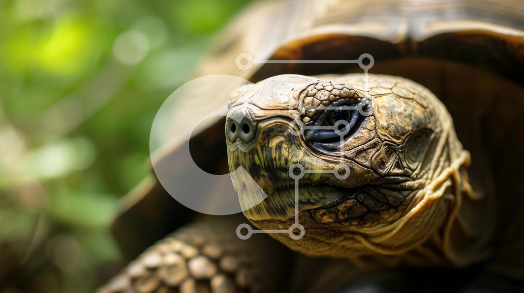 Υπάρχει δυνατότητα προσωποποίησης με δική σας φωτογραφία και προσαρμογής διαστάσεων κατόπιν παραγγελίας. Το συγεκεριμενο Puzzle 10x10 cm – 25 κομμ παρουσιαζει Αυτή η κοντινή εικόνα δείχνει το πρόσωπο μιας ενήλικης χελώνας. Η χελώνα κοιτάζει απευθείας την κάμερα με εστιασμένο βλέμμα. Το κεφάλι του γέρνει στο πλάι, δημιουργώντας μια μοναδική γωνία. Το φόντο έχει πράσινα φύλλα, προσθέτοντας οπτικό εν