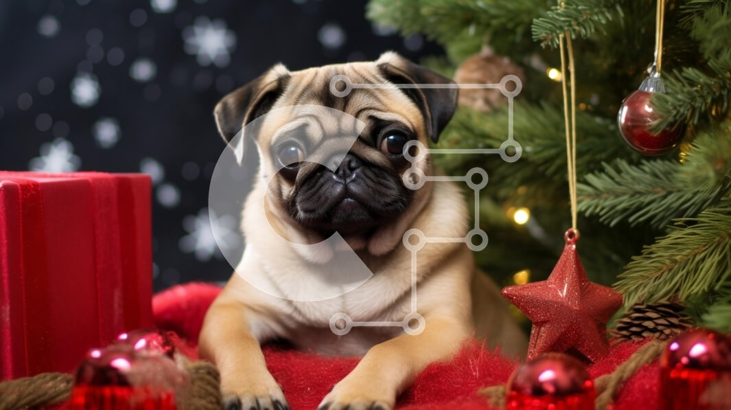 Υπάρχει δυνατότητα προσωποποίησης με δική σας φωτογραφία και προσαρμογής διαστάσεων κατόπιν παραγγελίας. Το συγεκεριμενο Puzzle 10x10 cm – 25 κομμ παρουσιαζει Αυτή η εικόνα παρουσιάζει ένα σκυλί πατημασιά που κάθεται μπροστά από ένα όμορφα στολισμένο χριστουγεννιάτικο δέντρο. Η πατημασιά έχει μια περίεργη έκφραση, με τα μεγάλα στρογγυλά μάτια και το χαρακτηριστικό ζαρωμένο πρόσωπο. Το φόντο στολίζ