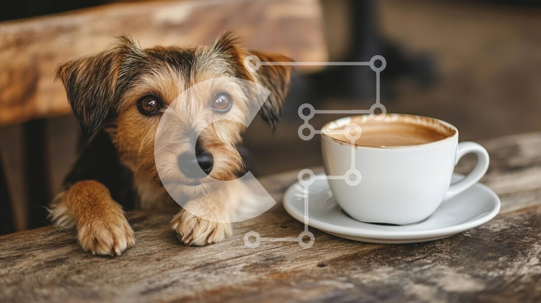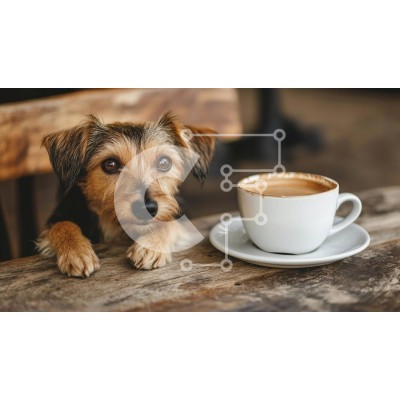 Υπάρχει δυνατότητα προσωποποίησης με δική σας φωτογραφία και προσαρμογής διαστάσεων κατόπιν παραγγελίας. Το συγεκεριμενο Puzzle 10x10 cm – 25 κομμ παρουσιαζει Η εικόνα παρουσιάζει ένα μικρό σκυλί με μια περίεργη έκφραση, που ακουμπά τα πόδια του σε ένα ξύλινο τραπέζι. Δίπλα στον σκύλο υπάρχει ένα λευκό φλιτζάνι καφέ γεμάτο με καφέ, σε ένα ασορτί πιατάκι. Οι ζεστοί τόνοι της ξύλινης επιφάνειας και