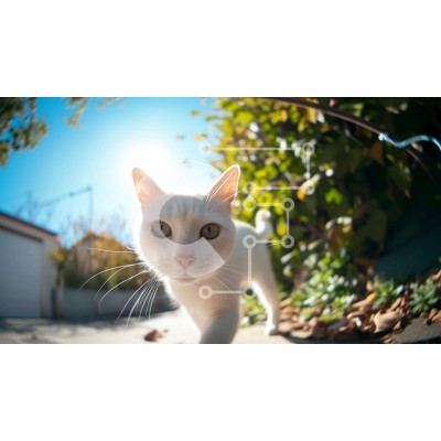 Υπάρχει δυνατότητα προσωποποίησης με δική σας φωτογραφία και προσαρμογής διαστάσεων κατόπιν παραγγελίας. Το συγεκεριμενο Puzzle 10x10 cm – 25 κομμ παρουσιαζει Η εικόνα δείχνει μια λευκή γάτα να περπατά σε ένα πεζοδρόμιο, με το κεφάλι της στραμμένο προς την κάμερα. Φαίνεται να είναι περίεργο για το περιβάλλον του, κοιτάζοντας πιθανώς κάτι στο βάθος, όπως θάμνους ή δέντρα. Ένα μοναδικό Puzzle 10x10