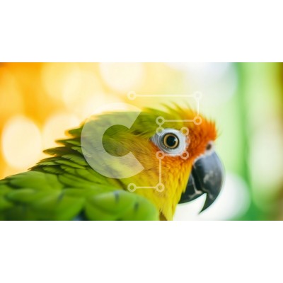Υπάρχει δυνατότητα προσωποποίησης με δική σας φωτογραφία και προσαρμογής διαστάσεων κατόπιν παραγγελίας. Το συγεκεριμενο Puzzle 10x10 cm – 25 κομμ παρουσιαζει Αυτή η εικόνα παρουσιάζει έναν πράσινο και πορτοκαλί παπαγάλο να στέκεται μπροστά σε ένα ζωντανό και πολύχρωμο φόντο. Το κεφάλι του πουλιού είναι ελαφρώς γερμένο στο πλάι, υποδηλώνοντας ότι είναι στραμμένο μακριά από την κάμερα. Τα μάτια του
