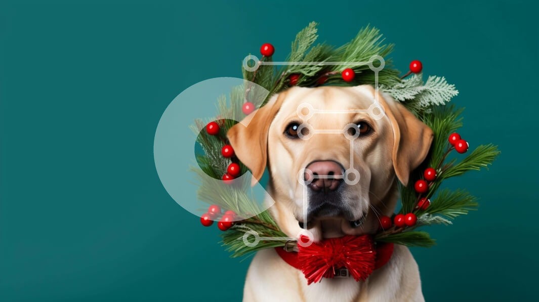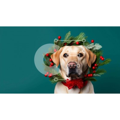 Υπάρχει δυνατότητα προσωποποίησης με δική σας φωτογραφία και προσαρμογής διαστάσεων κατόπιν παραγγελίας. Το συγεκεριμενο Puzzle 10x10 cm – 25 κομμ παρουσιαζει Αυτή η εικόνα παρουσιάζει έναν κίτρινο σκύλο Λαμπραντόρ που φορά ένα διακοσμητικό στεφάνι στο κεφάλι του. Το στεφάνι είναι διακοσμημένο με κόκκινα και πράσινα μούρα, προσθέτοντας μια εορταστική πινελιά στη σκηνή. Το πρόσωπο του σκύλου είναι