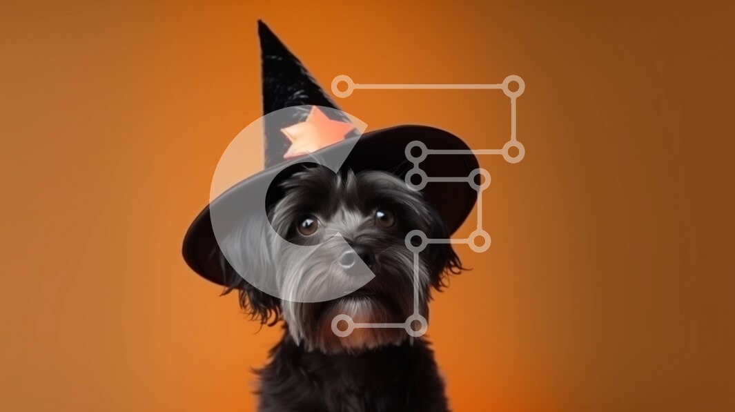 Υπάρχει δυνατότητα προσωποποίησης με δική σας φωτογραφία και προσαρμογής διαστάσεων κατόπιν παραγγελίας. Το συγεκεριμενο Puzzle 10x10 cm – 25 κομμ παρουσιαζει Αυτή η εικόνα παρουσιάζει έναν μαύρο σκύλο που φοράει ένα καπέλο μάγισσας, που κάθεται σε πορτοκαλί φόντο. Ο σκύλος κοιτάζει κατευθείαν την κάμερα, ενώ ο ιδιοκτήτης του χαμογελά στο βάθος. Αυτή η χαριτωμένη και εορταστική εικόνα είναι ιδανικ