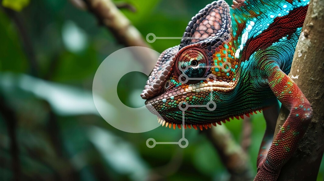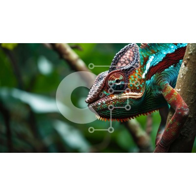 Υπάρχει δυνατότητα προσωποποίησης με δική σας φωτογραφία και προσαρμογής διαστάσεων κατόπιν παραγγελίας. Το συγεκεριμενο Puzzle 10x10 cm – 25 κομμ παρουσιαζει Αυτή η εικόνα δείχνει έναν πολύχρωμο χαμαιλέοντα σκαρφαλωμένο σε ένα κλαδί ενός δενδροκομείου. Ο χαμαιλέοντας ακουμπά στην πλάτη του, με το κεφάλι γερμένο προς την κάμερα. Ο ζωηρός χρωματισμός του και τα μοναδικά του σχέδια υποδηλώνουν ότι μ