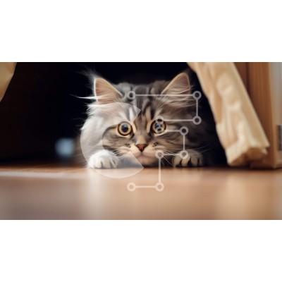 Υπάρχει δυνατότητα προσωποποίησης με δική σας φωτογραφία και προσαρμογής διαστάσεων κατόπιν παραγγελίας. Το συγεκεριμενο Puzzle 10x10 cm – 25 κομμ παρουσιαζει Αυτή η εικόνα παρουσιάζει μια χνουδωτή γκρίζα γάτα που κρυφοκοιτάζει πίσω από μια ξύλινη πόρτα. Η γάτα έχει λαμπερά πράσινα μάτια και ροζ μύτη και η γούνα της φαίνεται απαλή και αφράτη. Φαίνεται να είναι περίεργο για το τι υπάρχει στην άλλη
