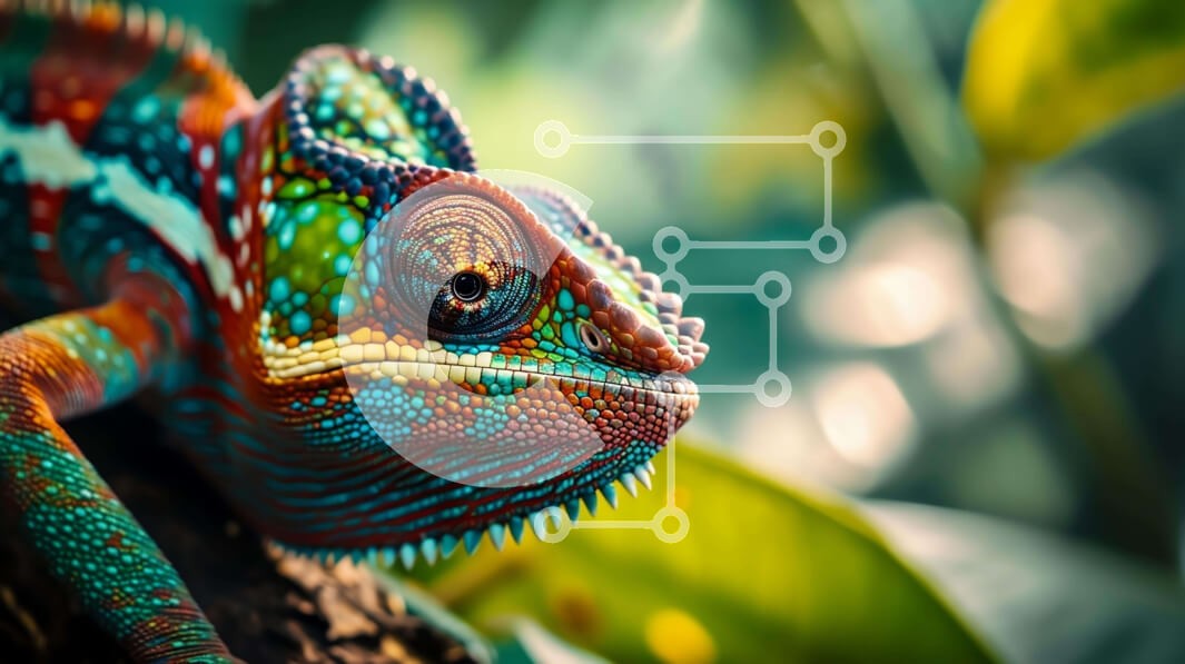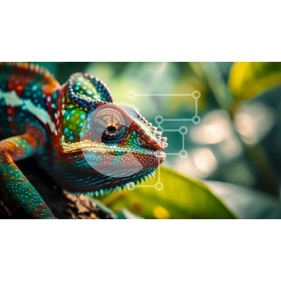 Υπάρχει δυνατότητα προσωποποίησης με δική σας φωτογραφία και προσαρμογής διαστάσεων κατόπιν παραγγελίας. Το συγεκεριμενο Puzzle 10x10 cm – 25 κομμ παρουσιαζει Αυτή η εικόνα παρουσιάζει έναν πολύχρωμο χαμαιλέοντα που στηρίζεται στο πλάι ενός προεξέχοντος κλαδιού. Το σώμα του χαμαιλέοντα καλύπτεται από λέπια με έντονα χρώματα, καθιστώντας τον ένα ζωντανό θέαμα. Φαίνεται να είναι σκαρφαλωμένο στην κο