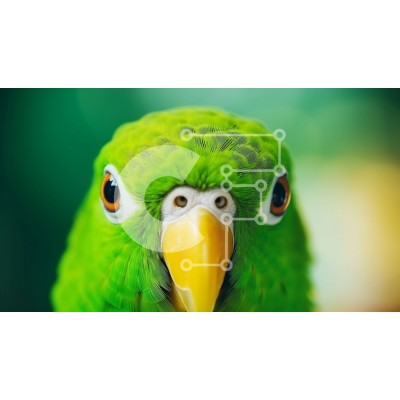 Υπάρχει δυνατότητα προσωποποίησης με δική σας φωτογραφία και προσαρμογής διαστάσεων κατόπιν παραγγελίας. Το συγεκεριμενο Puzzle 10x10 cm – 25 κομμ παρουσιαζει Αυτή η κοντινή εικόνα δείχνει έναν πράσινο παπαγάλο να κοιτάζει απευθείας την κάμερα. Το κεφάλι του πουλιού είναι γερμένο στο πλάι και το ράμφος του είναι ορθάνοιχτο. Το έντονο βλέμμα του υποδηλώνει περιέργεια ή ενδιαφέρον για κάτι ή κάποιον
