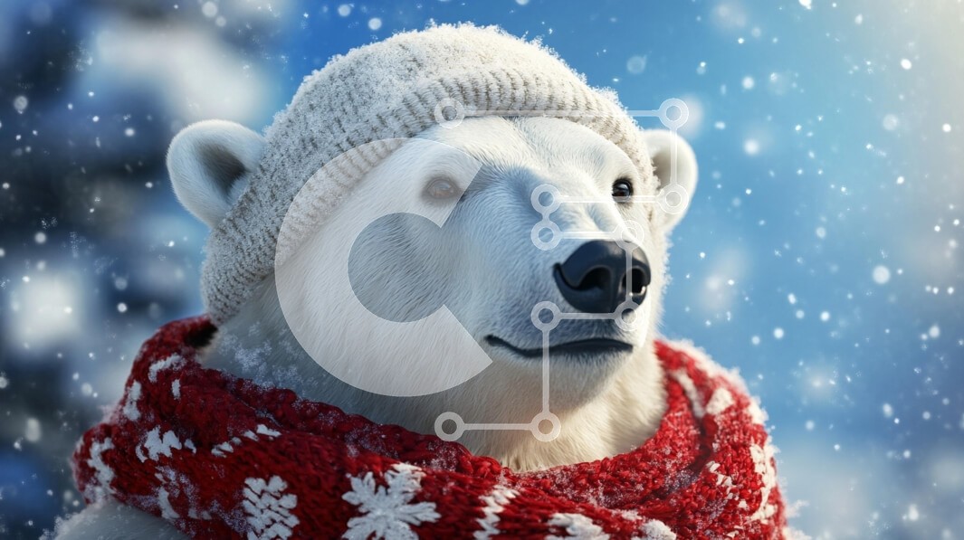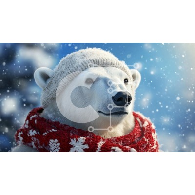 Υπάρχει δυνατότητα προσωποποίησης με δική σας φωτογραφία και προσαρμογής διαστάσεων κατόπιν παραγγελίας. Το συγεκεριμενο Puzzle 10x10 cm – 25 κομμ παρουσιαζει Η εικόνα παρουσιάζει μια ιδιότροπη σκηνή μιας πολικής αρκούδας που φορά ένα πλεκτό καπέλο και ένα κόκκινο κασκόλ με λευκά σχέδια. Η έκφραση της αρκούδας είναι ήρεμη και ελαφρώς στοχαστική καθώς κοιτάζει την απόσταση. Γύρω του πέφτουν απαλά ν