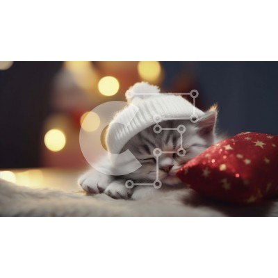 Υπάρχει δυνατότητα προσωποποίησης με δική σας φωτογραφία και προσαρμογής διαστάσεων κατόπιν παραγγελίας. Το συγεκεριμενο Puzzle 10x10 cm – 25 κομμ παρουσιαζει Αυτή η εικόνα δείχνει ένα μικρό γκρι γατάκι να κοιμάται ήσυχα με το λευκό καπέλο του πάνω από ένα διακοσμημένο κόκκινο μαξιλάρι. Το γατάκι φαίνεται να ακουμπάει στο μαξιλάρι με το κεφάλι του σηκωμένο, υποδηλώνοντας μια κατάσταση χαλάρωσης. Γ