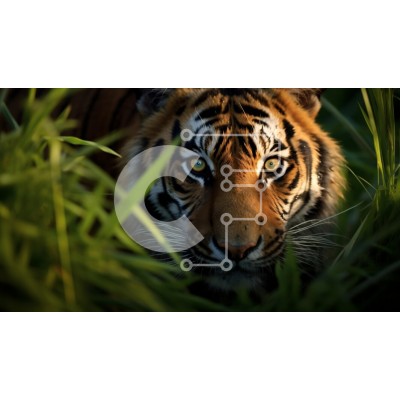 Υπάρχει δυνατότητα προσωποποίησης με δική σας φωτογραφία και προσαρμογής διαστάσεων κατόπιν παραγγελίας. Το συγεκεριμενο Puzzle 10x10 cm – 25 κομμ παρουσιαζει Η εικόνα παρουσιάζει ένα κοντινό πλάνο του προσώπου μιας τίγρης που κοιτάζει μέσα από ψηλό γρασίδι. Η εντυπωσιακή πορτοκαλί και μαύρη ριγέ γούνα της τίγρης έρχεται σε όμορφη αντίθεση με το πράσινο φύλλωμα που την περιβάλλει. Τα διαπεραστικά