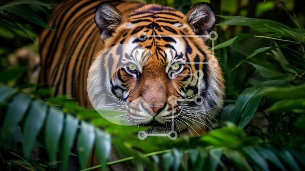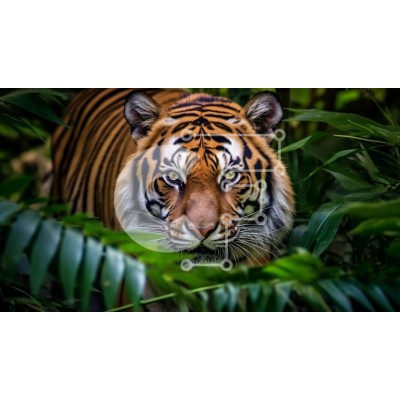 Υπάρχει δυνατότητα προσωποποίησης με δική σας φωτογραφία και προσαρμογής διαστάσεων κατόπιν παραγγελίας. Το συγεκεριμενο Puzzle 10x10 cm – 25 κομμ παρουσιαζει Αυτή η εικόνα παρουσιάζει μια τίγρη στη ζούγκλα, που κοιτάζει απευθείας την κάμερα με τα διαπεραστικά της μάτια. Η γούνα της τίγρης είναι κομψή και λαμπερή, με ευδιάκριτες ρίγες ορατές. Η πλούσια πράσινη βλάστηση περιβάλλει την τίγρη, με φύλ