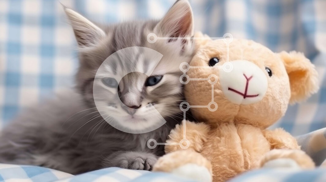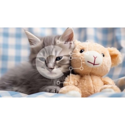 Υπάρχει δυνατότητα προσωποποίησης με δική σας φωτογραφία και προσαρμογής διαστάσεων κατόπιν παραγγελίας. Το συγεκεριμενο Puzzle 10x10 cm – 25 κομμ παρουσιαζει Αυτή η εικόνα παρουσιάζει ένα γκρι γατάκι που κάθεται δίπλα σε ένα μεγάλο αρκουδάκι. Το γατάκι ακουμπά το κεφάλι του στο πλάι της κουβέρτας, κάτι που μπορεί να υποδηλώνει ότι αισθάνεται άνετα με το λούτρινο ζώο. Θα μπορούσε επίσης να σημαίνε