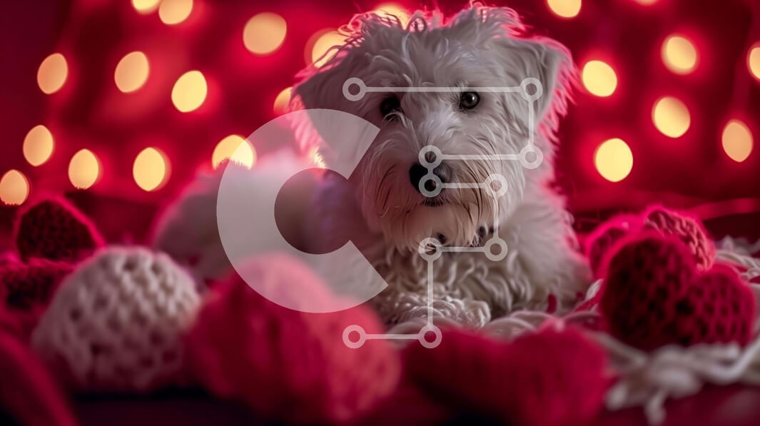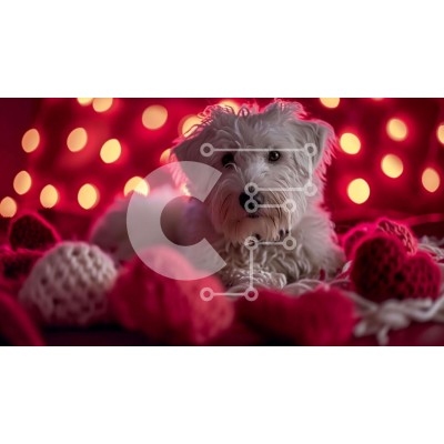 Υπάρχει δυνατότητα προσωποποίησης με δική σας φωτογραφία και προσαρμογής διαστάσεων κατόπιν παραγγελίας. Το συγεκεριμενο Puzzle 10x10 cm – 25 κομμ παρουσιαζει Αυτή η εικόνα απεικονίζει έναν λευκό σκύλο ξαπλωμένο πάνω από κόκκινα μαξιλάρια σε σχήμα καρδιάς με ροζ και κόκκινες καρδιές να τον περιβάλλουν. Υπάρχουν επίσης πλεκτές μπάλες που τοποθετούνται γύρω από τον σκύλο για επιπλέον ζεστασιά και άν