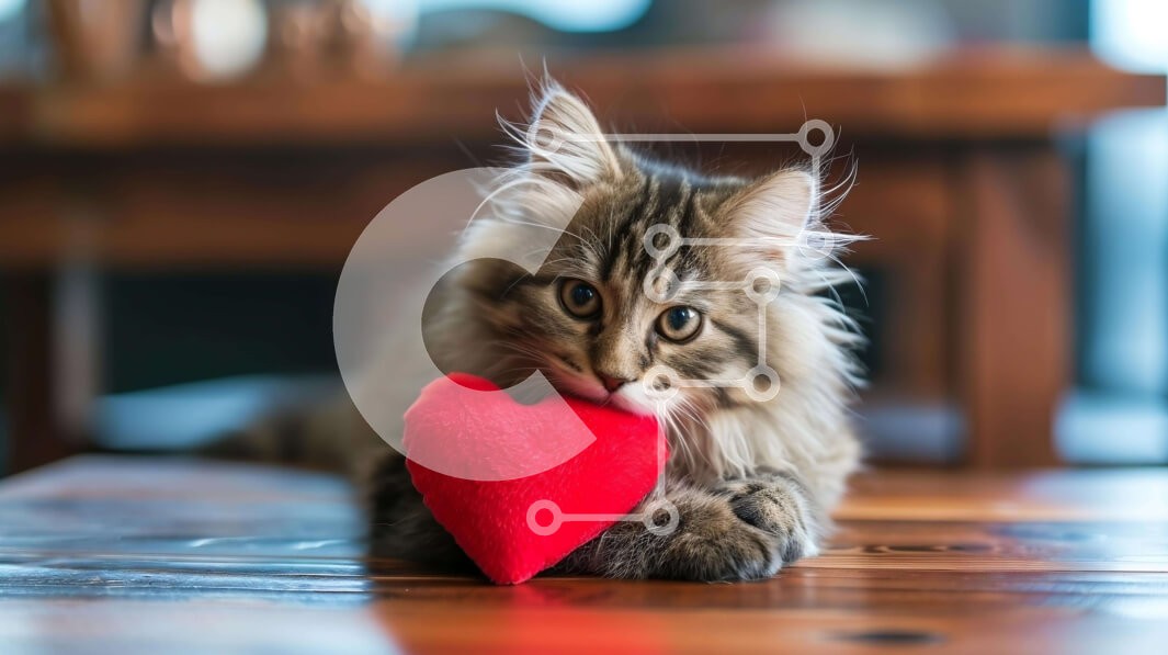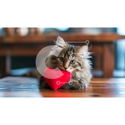 Υπάρχει δυνατότητα προσωποποίησης με δική σας φωτογραφία και προσαρμογής διαστάσεων κατόπιν παραγγελίας. Το συγεκεριμενο Puzzle 10x10 cm – 25 κομμ παρουσιαζει Αυτή η εικόνα δείχνει μια μικρή, αφράτη γάτα ξαπλωμένη σε ένα ξύλινο τραπέζι με το στόμα ανοιχτό, και φαίνεται να απολαμβάνει ένα κόκκινο παιχνίδι σε σχήμα καρδιάς. Το φόντο περιέχει πολλά αντικείμενα, δημιουργώντας μια ζεστή ατμόσφαιρα που