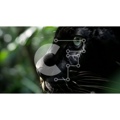 Υπάρχει δυνατότητα προσωποποίησης με δική σας φωτογραφία και προσαρμογής διαστάσεων κατόπιν παραγγελίας. Το συγεκεριμενο Puzzle 10x10 cm – 25 κομμ παρουσιαζει Αυτή η εικόνα είναι μια κοντινή λήψη του προσώπου ενός μαύρου πάνθηρα. Η εστίαση είναι στα λαμπερά πράσινα μάτια του, που είναι σαγηνευτικά και έντονα. Ο πάνθηρας φαίνεται να κοιτάζει κάτι στο βάθος, πιθανώς φύλλα ή δέντρα, επιδεικνύοντας τα