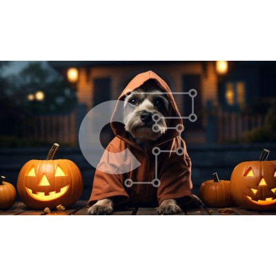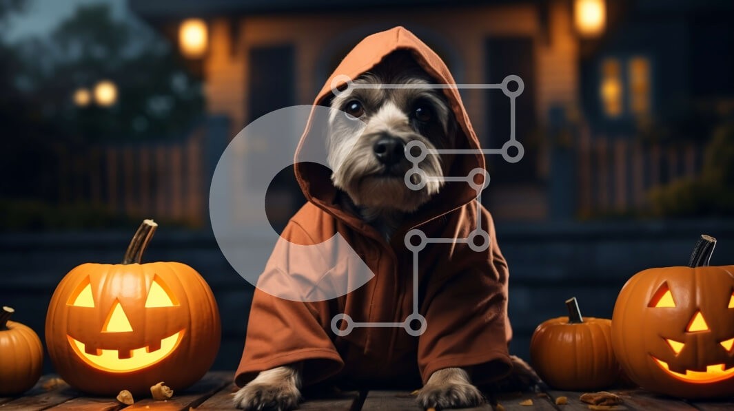 Υπάρχει δυνατότητα προσωποποίησης με δική σας φωτογραφία και προσαρμογής διαστάσεων κατόπιν παραγγελίας. Το συγεκεριμενο Puzzle 10x10 cm – 25 κομμ παρουσιαζει Αυτή η εικόνα παρουσιάζει ένα μικρό σκυλί που φορά ένα σακάκι με κολοκύθες. Ο σκύλος κάθεται σε μια ξύλινη επιφάνεια με τα μπροστινά του πόδια ακουμπισμένα στο έδαφος. Το φόντο δείχνει μια κατοικημένη περιοχή με δέντρα και ένα σπίτι σε απόστ