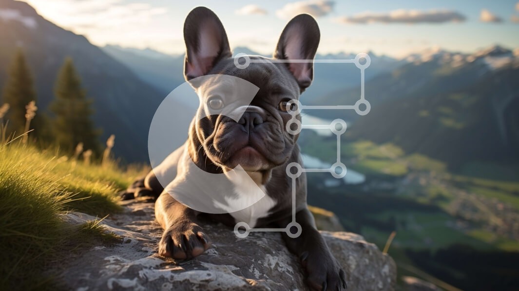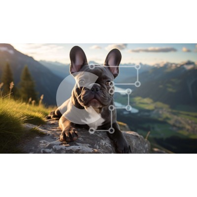 Υπάρχει δυνατότητα προσωποποίησης με δική σας φωτογραφία και προσαρμογής διαστάσεων κατόπιν παραγγελίας. Το συγεκεριμενο Puzzle 10x10 cm – 25 κομμ παρουσιαζει Αυτή η εικόνα παρουσιάζει ένα γοητευτικό γαλλικό μπουλντόγκ που κάθεται σε μια βραχώδη επιφάνεια, με φόντο τα βουνά που κόβουν την ανάσα. Ο σκύλος έχει ασπρόμαυρο παλτό και φοράει γιακά με ετικέτα. Ο ήλιος που δύει ρίχνει μια ζεστή λάμψη στη