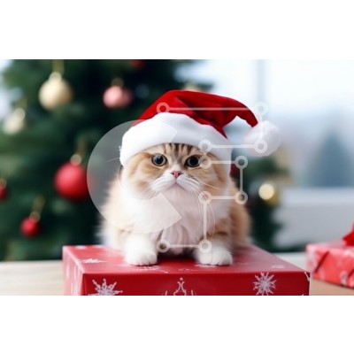 Υπάρχει δυνατότητα προσωποποίησης με δική σας φωτογραφία και προσαρμογής διαστάσεων κατόπιν παραγγελίας. Το συγεκεριμενο Puzzle 10x10 cm – 25 κομμ παρουσιαζει Η εικόνα απεικονίζει μια χνουδωτή γάτα στολισμένη με ένα κόκκινο καπέλο του Άγιου Βασίλη, που κάθεται πάνω από ένα όμορφα τυλιγμένο κόκκινο κουτί δώρου. Το φόντο είναι στολισμένο με ένα χριστουγεννιάτικο δέντρο στολισμένο με στολίδια, δημιου