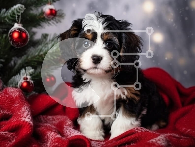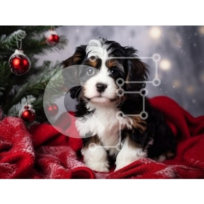 Υπάρχει δυνατότητα προσωποποίησης με δική σας φωτογραφία και προσαρμογής διαστάσεων κατόπιν παραγγελίας. Το συγεκεριμενο Puzzle 10x10 cm – 25 κομμ παρουσιαζει Αυτή η εικόνα παρουσιάζει ένα αξιολάτρευτο κουτάβι που κάθεται σε μια ζεστή κόκκινη κουβέρτα, που περιβάλλεται από ένα όμορφα στολισμένο χριστουγεννιάτικο δέντρο. Το κουτάβι έχει ένα ξεχωριστό τρίχρωμο παλτό με χνουδωτή γούνα και μαγευτικά μ