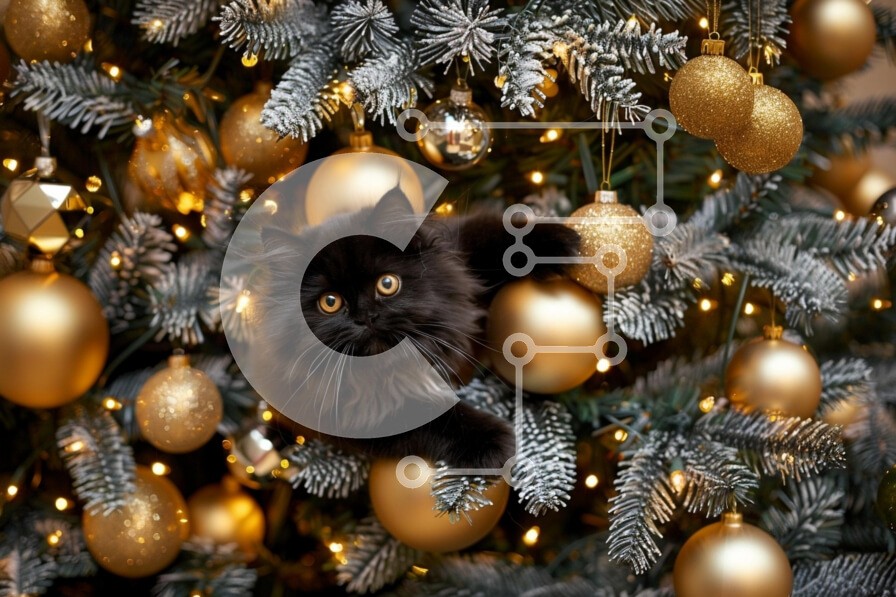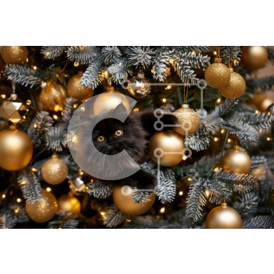 Υπάρχει δυνατότητα προσωποποίησης με δική σας φωτογραφία και προσαρμογής διαστάσεων κατόπιν παραγγελίας. Το συγεκεριμενο Puzzle 10x10 cm – 25 κομμ παρουσιαζει Αυτή η εικόνα παρουσιάζει μια παιχνιδιάρικη μαύρη γάτα φωλιασμένη ανάμεσα στα χρυσά στολίδια ενός στολισμένου χριστουγεννιάτικου δέντρου. Η γάτα φαίνεται περίεργη, με ανοιχτά μάτια και χνουδωτή γούνα, που έρχεται σε όμορφη αντίθεση με τα αστ