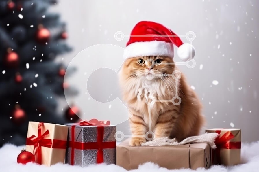 Υπάρχει δυνατότητα προσωποποίησης με δική σας φωτογραφία και προσαρμογής διαστάσεων κατόπιν παραγγελίας. Το συγεκεριμενο Puzzle 10x10 cm – 25 κομμ παρουσιαζει Αυτή η εικόνα απεικονίζει μια αφράτη πορτοκαλί γάτα που φορά ένα γιορτινό καπέλο Άγιου Βασίλη, κάθεται πάνω σε μια στοίβα τυλιγμένα δώρα. Το φόντο είναι στολισμένο με ένα χριστουγεννιάτικο δέντρο στολισμένο με κόκκινα στολίδια και νιφάδες χι