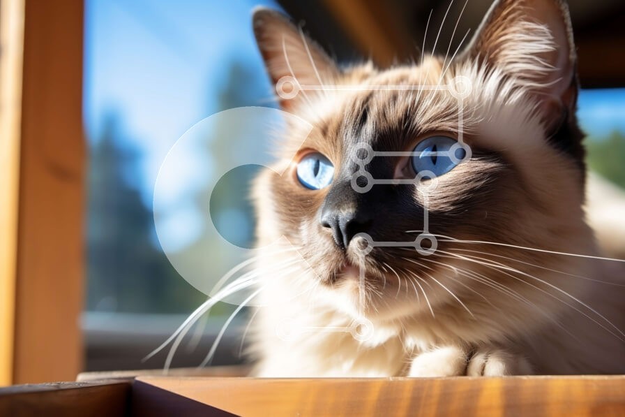 Υπάρχει δυνατότητα προσωποποίησης με δική σας φωτογραφία και προσαρμογής διαστάσεων κατόπιν παραγγελίας. Το συγεκεριμενο Puzzle 10x10 cm – 25 κομμ παρουσιαζει Αυτή η εικόνα δείχνει μια κοντινή άποψη του προσώπου μιας γάτας με φωτεινά μπλε μάτια. Η γάτα έχει μακριά και χνουδωτή γούνα με ένα μείγμα ανοιχτόχρωμων και σκούρων χρωμάτων. Τα μουστάκια του είναι μακριά και θαμνώδη και η μύτη του είναι ροζ