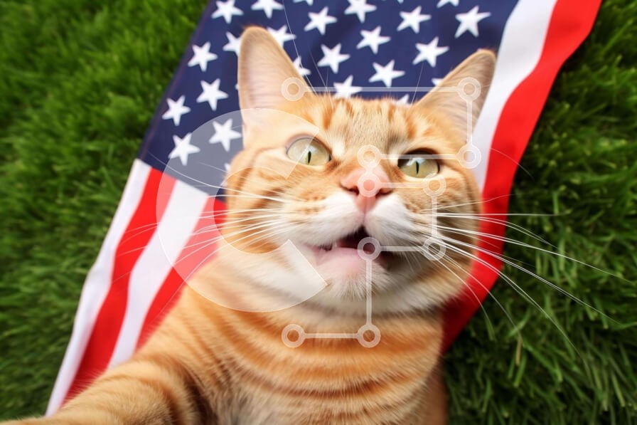 Υπάρχει δυνατότητα προσωποποίησης με δική σας φωτογραφία και προσαρμογής διαστάσεων κατόπιν παραγγελίας. Το συγεκεριμενο Puzzle 10x10 cm – 25 κομμ παρουσιαζει Η εικόνα δείχνει μια πορτοκαλί γάτα να κάθεται στο γρασίδι δίπλα σε μια αμερικανική σημαία. Η γάτα κοιτάζει ψηλά στην κάμερα, δείχνοντας ότι ενδιαφέρεται να τραβήξει μια φωτογραφία του εαυτού της. Μπορεί επίσης να είναι περίεργο για τη σημαί
