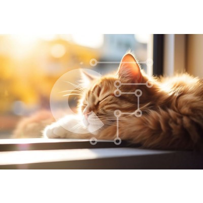 Υπάρχει δυνατότητα προσωποποίησης με δική σας φωτογραφία και προσαρμογής διαστάσεων κατόπιν παραγγελίας. Το συγεκεριμενο Puzzle 10x10 cm – 25 κομμ παρουσιαζει Αυτή η εικόνα είναι μια κοντινή όψη μιας κοιμισμένης πορτοκαλί και λευκής ριγέ γάτας που κάθεται σε ένα περβάζι και κοιτάζει έξω από το παράθυρο. Η γούνα της γάτας είναι αφράτη και τα μάτια της κλειστά καθώς απολαμβάνει έναν ήρεμο υπνάκο στο