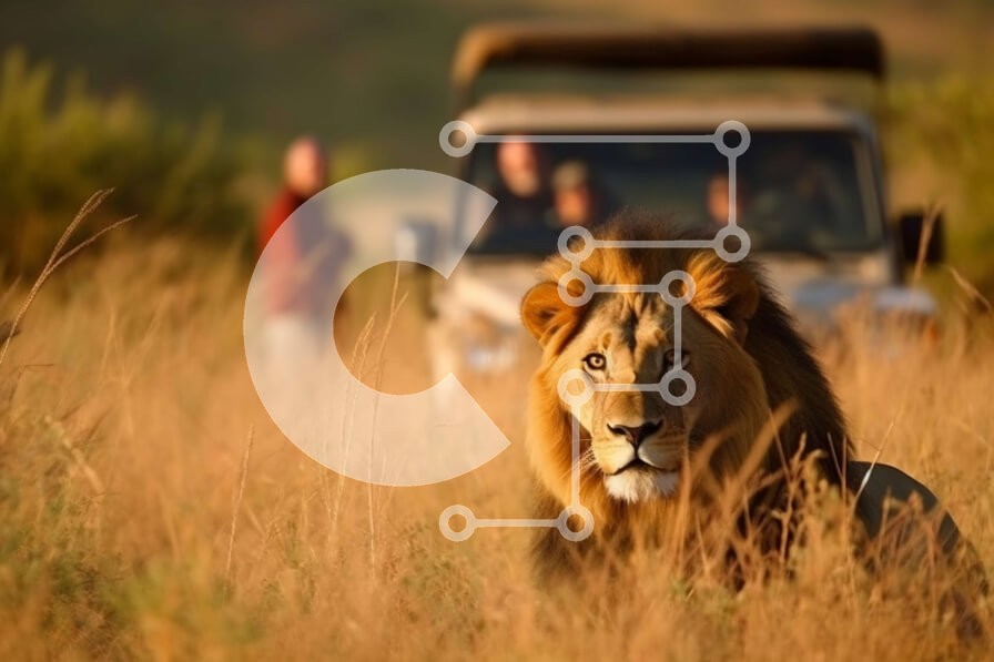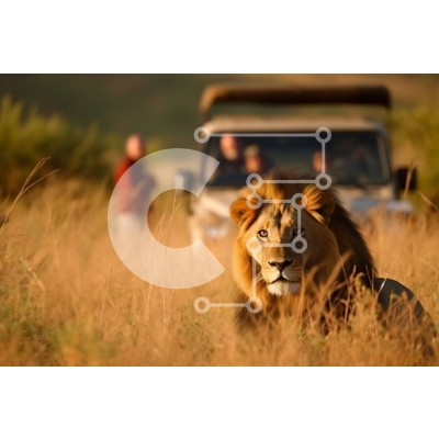 Υπάρχει δυνατότητα προσωποποίησης με δική σας φωτογραφία και προσαρμογής διαστάσεων κατόπιν παραγγελίας. Το συγεκεριμενο Puzzle 10x10 cm – 25 κομμ παρουσιαζει Αυτή η εικόνα δείχνει ένα λιοντάρι να στέκεται περήφανο στη σαβάνα, με ένα τζιπ ορατό στο βάθος. Η γούνα του λιονταριού έχει ένα όμορφο χρυσό χρώμα και το βλέμμα του είναι έντονο και εστιασμένο. Πίσω του απλώνεται το τοπίο της σαβάνας, με ψη