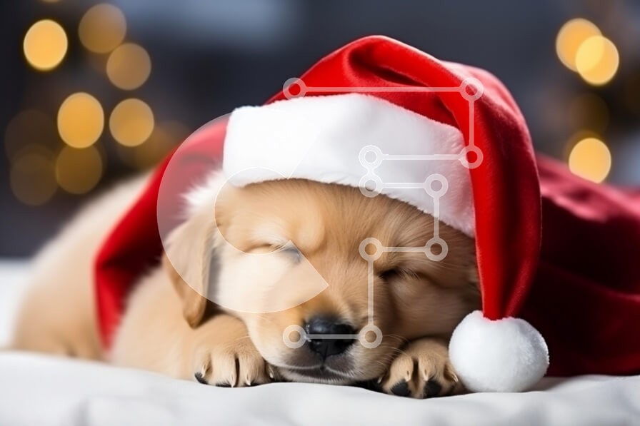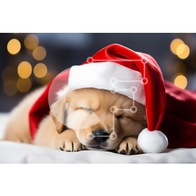 Υπάρχει δυνατότητα προσωποποίησης με δική σας φωτογραφία και προσαρμογής διαστάσεων κατόπιν παραγγελίας. Το συγεκεριμενο Puzzle 10x10 cm – 25 κομμ παρουσιαζει Αυτή η εικόνα παρουσιάζει ένα αξιολάτρευτο κουτάβι Golden Retriever που κοιμάται ήσυχα, στολισμένο με ένα εορταστικό κόκκινο και άσπρο καπέλο του Άγιου Βασίλη. Το φόντο είναι θολό, γεμάτο με ζεστά φώτα bokeh που δημιουργούν μια ζεστή ατμόσφα