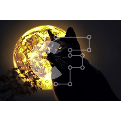 Υπάρχει δυνατότητα προσωποποίησης με δική σας φωτογραφία και προσαρμογής διαστάσεων κατόπιν παραγγελίας. Το συγεκεριμενο Puzzle 10x10 cm – 25 κομμ παρουσιαζει Αυτή η εικόνα παρουσιάζει μια μαύρη γάτα που κάθεται μπροστά σε μια πανσέληνο. Η μαύρη γάτα ξεχωρίζει στον σκοτεινό νυχτερινό ουρανό, με τα μάτια της να λάμπουν και τη γούνα της να αστράφτει στο φως του φεγγαριού. Η πανσέληνος παρέχει μια φω