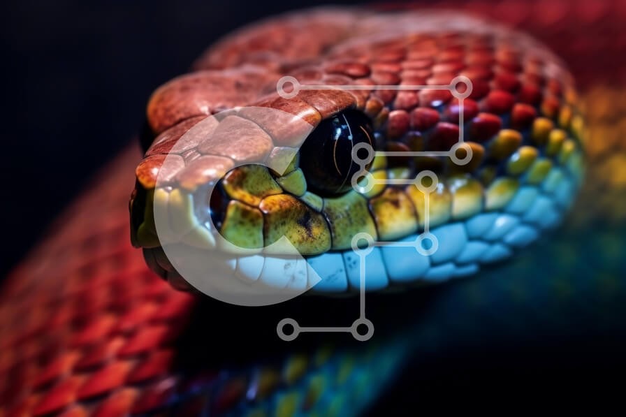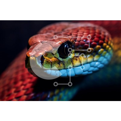 Υπάρχει δυνατότητα προσωποποίησης με δική σας φωτογραφία και προσαρμογής διαστάσεων κατόπιν παραγγελίας. Το συγεκεριμενο Puzzle 10x10 cm – 25 κομμ παρουσιαζει Αυτή η κοντινή εικόνα καταγράφει τα ζωηρά χρώματα και τις περίπλοκες λεπτομέρειες του κεφαλιού ενός φιδιού. Τα έντονα χρωματιστά λέπια ξεχωρίζουν στο μαύρο φόντο, δημιουργώντας μια εντυπωσιακή αντίθεση. Η έντονη εστίαση στο μάτι και τη γλώσσ