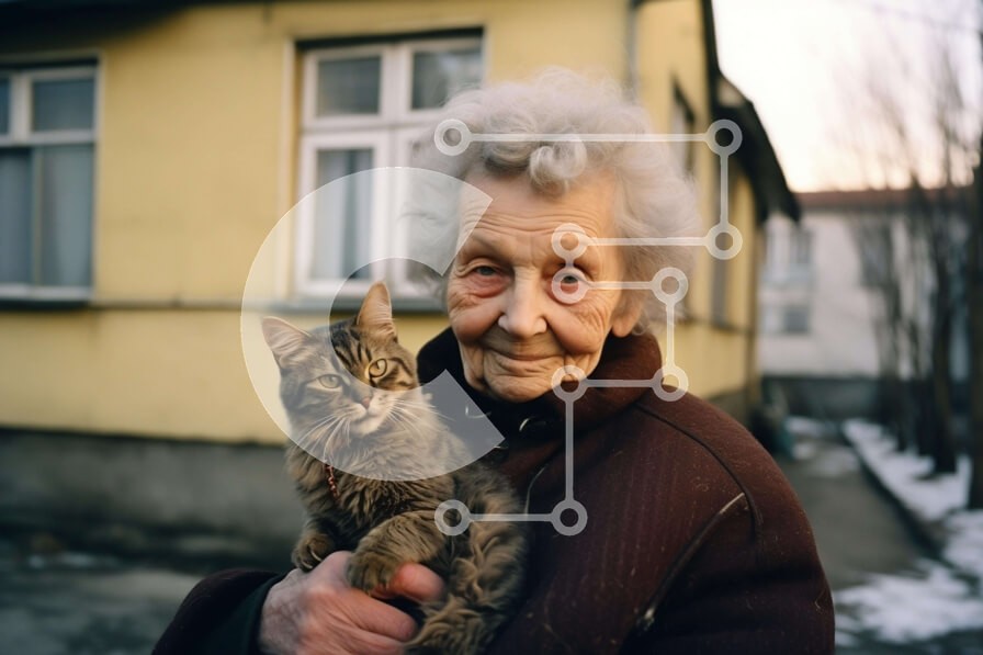 Υπάρχει δυνατότητα προσωποποίησης με δική σας φωτογραφία και προσαρμογής διαστάσεων κατόπιν παραγγελίας. Το συγεκεριμενο Puzzle 10x10 cm – 25 κομμ παρουσιαζει Η εικόνα δείχνει μια ηλικιωμένη γυναίκα που κρατά μια γάτα στην αγκαλιά της. Η γάτα έχει καφέ και μαύρη γούνα με λευκές κηλίδες. Η γυναίκα φαίνεται να φροντίζει τη γάτα με στοργή. Ένα μοναδικό Puzzle 10x10 cm – 25 κομμπου συνδυάζει ποιότητα