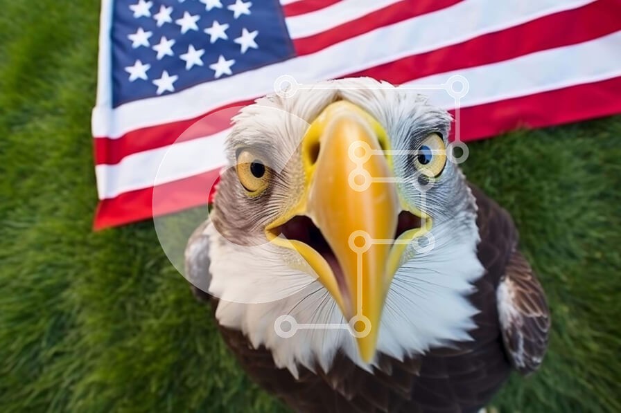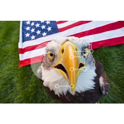 Υπάρχει δυνατότητα προσωποποίησης με δική σας φωτογραφία και προσαρμογής διαστάσεων κατόπιν παραγγελίας. Το συγεκεριμενο Puzzle 10x10 cm – 25 κομμ παρουσιαζει Η εικόνα απεικονίζει έναν φαλακρό αετό να στέκεται μπροστά από μια αμερικανική σημαία, με το ράμφος του ορθάνοιχτο και το κεφάλι του γερμένο στο πλάι. Είναι πιθανό ότι το πουλί είναι σκαρφαλωμένο πάνω από το γρασίδι, καθώς φαίνεται να κοιτάζ