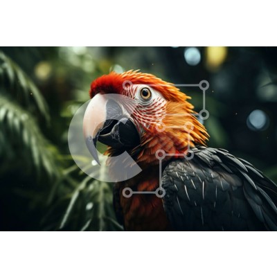 Υπάρχει δυνατότητα προσωποποίησης με δική σας φωτογραφία και προσαρμογής διαστάσεων κατόπιν παραγγελίας. Το συγεκεριμενο Puzzle 10x10 cm – 25 κομμ παρουσιαζει Αυτή η κοντινή εικόνα δείχνει το κεφάλι ενός παπαγάλου με ένα ζωηρό κόκκινο, κίτρινο και μαύρο σχέδιο. Τα αναστατωμένα φτερά στο κεφάλι του δίνουν μια ατημέλητη εμφάνιση. Τα μάτια του παπαγάλου έχουν έντονο κίτρινο χρώμα και το μακρύ, κυρτό