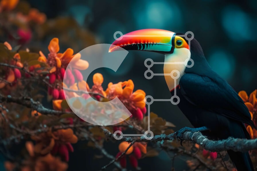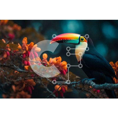Υπάρχει δυνατότητα προσωποποίησης με δική σας φωτογραφία και προσαρμογής διαστάσεων κατόπιν παραγγελίας. Το συγεκεριμενο Puzzle 10x10 cm – 25 κομμ παρουσιαζει Αυτή η εικόνα απεικονίζει ένα πολύχρωμο τουκάν σκαρφαλωμένο σε ένα κλαδί σε ένα καταπράσινο περιβάλλον ζούγκλας. Το τουκάν έχει μεγάλο, πολύχρωμο ράμφος και περιβάλλεται από ζωηρά λουλούδια και φύλλωμα. Ένα μοναδικό Puzzle 10x10 cm – 25 κομ