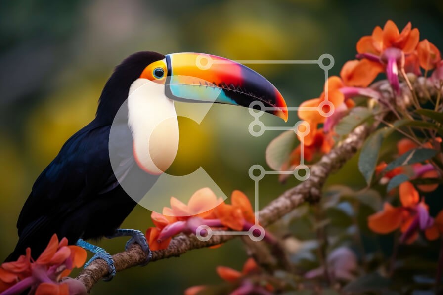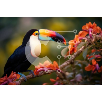Υπάρχει δυνατότητα προσωποποίησης με δική σας φωτογραφία και προσαρμογής διαστάσεων κατόπιν παραγγελίας. Το συγεκεριμενο Puzzle 10x10 cm – 25 κομμ παρουσιαζει Αυτή η εικόνα παρουσιάζει ένα πουλί τούκαν σκαρφαλωμένο σε ένα κλαδί με πολύχρωμα λουλούδια στο φόντο. Το πουλί έχει ένα χαρακτηριστικό ράμφος και ζωηρά φτερά, προσθέτοντας χρώμα στη σκηνή. Τα λουλούδια προσθέτουν μια επιπλέον πινελιά χρώματ