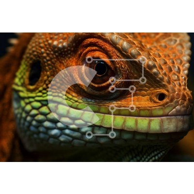 Υπάρχει δυνατότητα προσωποποίησης με δική σας φωτογραφία και προσαρμογής διαστάσεων κατόπιν παραγγελίας. Το συγεκεριμενο Puzzle 10x10 cm – 25 κομμ παρουσιαζει Αυτή η εικόνα είναι ένα κοντινό πλάνο του προσώπου μιας σαύρας, που τονίζει τα λαμπερά πράσινα μάτια και τα πορτοκαλί λέπια στο κεφάλι και το λαιμό της. Είναι μια εκπληκτική λήψη που καταγράφει τις περίπλοκες λεπτομέρειες των χαρακτηριστικών