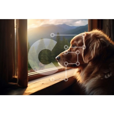 Υπάρχει δυνατότητα προσωποποίησης με δική σας φωτογραφία και προσαρμογής διαστάσεων κατόπιν παραγγελίας. Το συγεκεριμενο Puzzle 10x10 cm – 25 κομμ παρουσιαζει Αυτή η εικόνα παρουσιάζει έναν σκύλο Golden Retriever που κάθεται δίπλα σε ένα παράθυρο, κοιτάζοντας μια γραφική θέα σε βουνά και δέντρα. Ο σκύλος έχει ένα χνουδωτό τρίχωμα και μια φιλική έκφραση, προσθέτοντας στην αξιολάτρευτη γοητεία του.