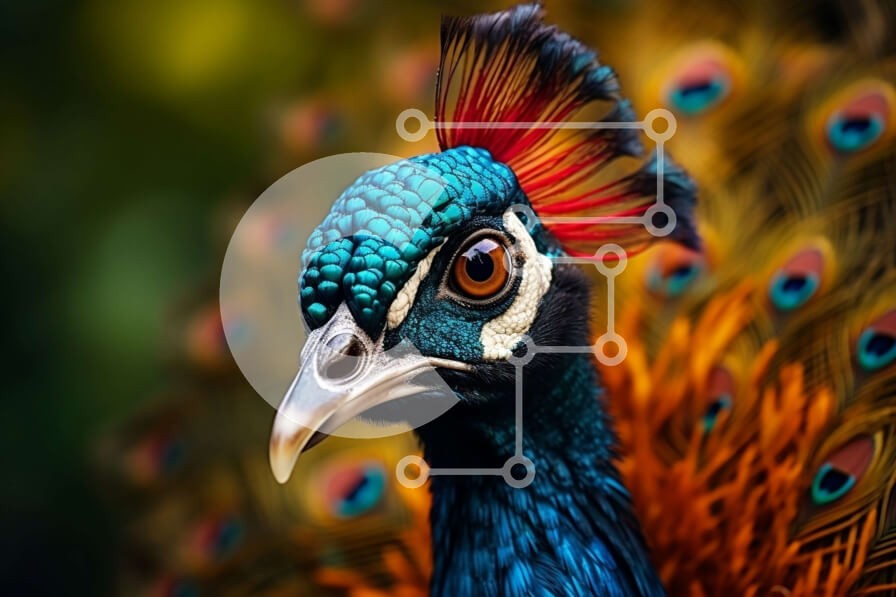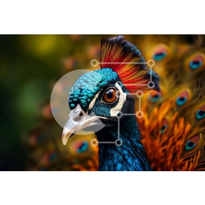 Υπάρχει δυνατότητα προσωποποίησης με δική σας φωτογραφία και προσαρμογής διαστάσεων κατόπιν παραγγελίας. Το συγεκεριμενο Puzzle 10x10 cm – 25 κομμ παρουσιαζει Αυτή η εικόνα είναι μια κοντινή όψη του κεφαλιού ενός παγωνιού, που δείχνει τα ζωντανά φτερά του σε αποχρώσεις του μπλε, του πράσινου και του μωβ. Τα φτερά είναι τακτοποιημένα σε σχήμα βεντάλιας, με τα μακρύτερα φτερά να εκτείνονται από το π