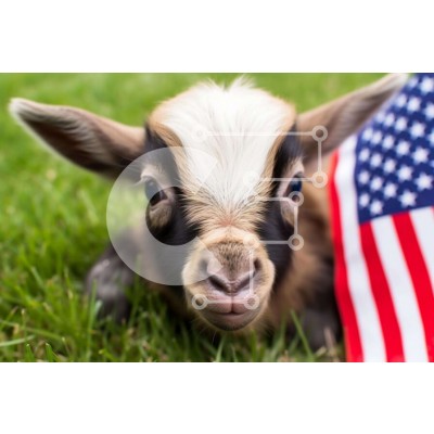 Υπάρχει δυνατότητα προσωποποίησης με δική σας φωτογραφία και προσαρμογής διαστάσεων κατόπιν παραγγελίας. Το συγεκεριμενο Puzzle 10x10 cm – 25 κομμ παρουσιαζει Η εικόνα δείχνει μια μικρή κατσίκα ξαπλωμένη στο γρασίδι με μια αμερικανική σημαία μπροστά της. Το κεφάλι της κατσίκας γέρνει στο πλάι και τα μάτια της είναι ορθάνοιχτα, υποδηλώνοντας την περιέργεια για τη σημαία. Φαίνεται να κοιτάζει την κά