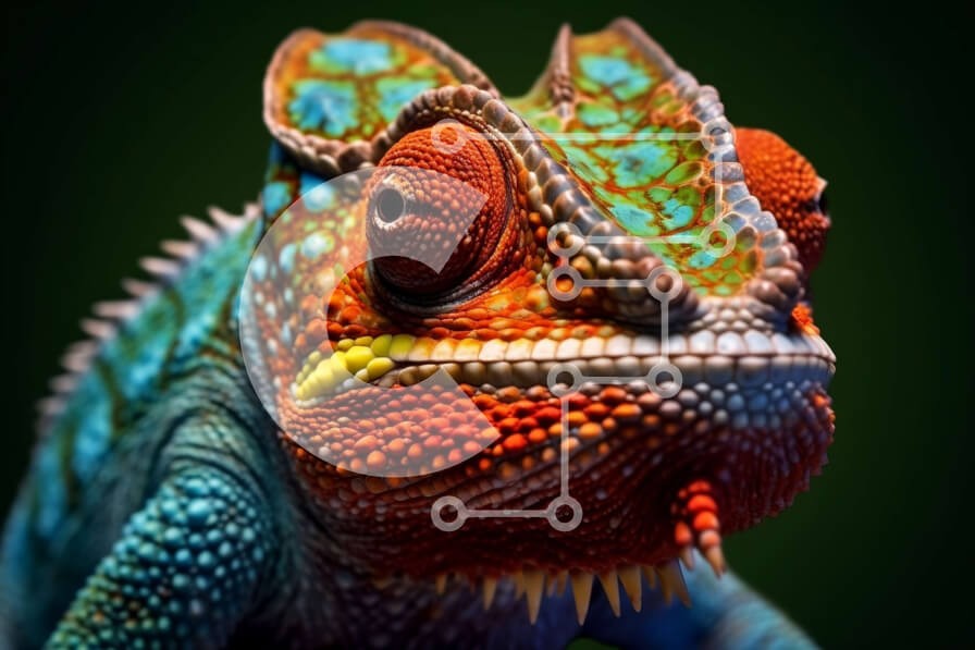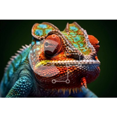 Υπάρχει δυνατότητα προσωποποίησης με δική σας φωτογραφία και προσαρμογής διαστάσεων κατόπιν παραγγελίας. Το συγεκεριμενο Puzzle 10x10 cm – 25 κομμ παρουσιαζει Αυτή η εικόνα παρουσιάζει έναν πολύχρωμο χαμαιλέοντα με έντονα μπλε, κόκκινα και πράσινα χρώματα στο σώμα του και μια μακριά ουρά. Τα μάτια του είναι έντονο κίτρινο και η γλώσσα του βγαίνει έξω. Ο χαμαιλέοντας είναι σκαρφαλωμένος σε ένα κλαδ